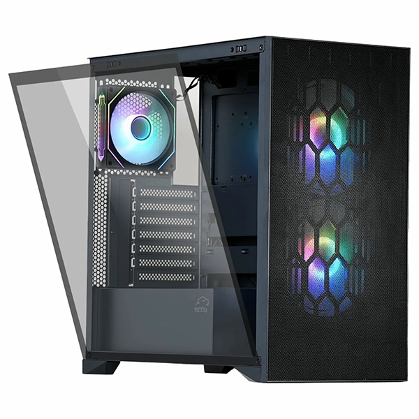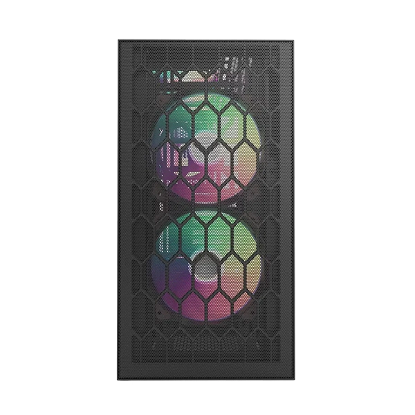 - ✔️ تهویه هوای بیرقیب (High Airflow): پنل جلویی با طراحی کاملاً مش، به هوا اجازه میدهد آزادانه وارد کیس شود. این طراحی، دمای قطعات داخلی را به شکل چشمگیری کاهش داده و عمر مفید آنها را افزایش میدهد.