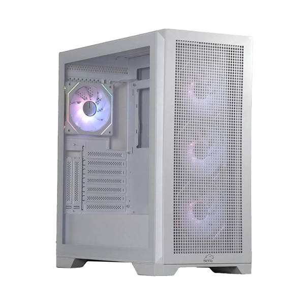 - ✔️ بدنه تماماً سفید و یکدست: این کیس با رنگ سفید مات و خالص، بستری ایدهآل برای نمایش قطعات سفید یا رنگی و نورپردازی ARGB است و به ستاپ شما جلوهای پاک، مدرن و حرفهای میبخشد.