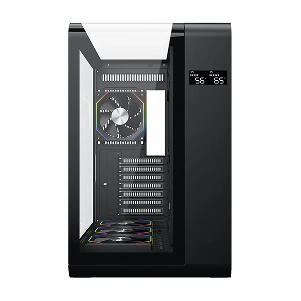 - ✔️ نمایشگر دیجیتال دما: مجهز به یک صفحه نمایش کوچک و کاربردی روی بدنه که به صورت زنده دمای پردازنده (CPU) و کارت گرافیک (GPU) را نمایش میدهد تا همیشه بر عملکرد سیستم خود نظارت داشته باشید.