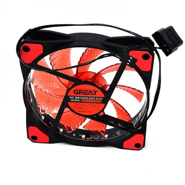 فن کیس 12 سانتیمتری GREAT ترکیبی بینظیر از کارایی بالا و زیبایی چشمنواز است که با هزینه بسیار کم، جان تازهای به کامپیوتر شما میبخشد. این فن با ایجاد جریان هوای قدرتمند، قطعات حیاتی سیستم شما را خنک نگه میدارد و با نورپردازی LED قرمز خود، جلوهای حرفهای و گیمینگ به کیس شما اضافه میکند.