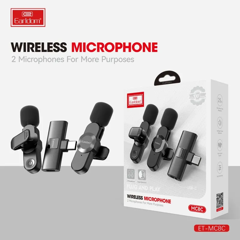 میکروفون بیسیم یقهای دوکاربره ارلدام Earldom ET-MC8C (مخصوص Type-C با قابلیت شارژ همزمان)