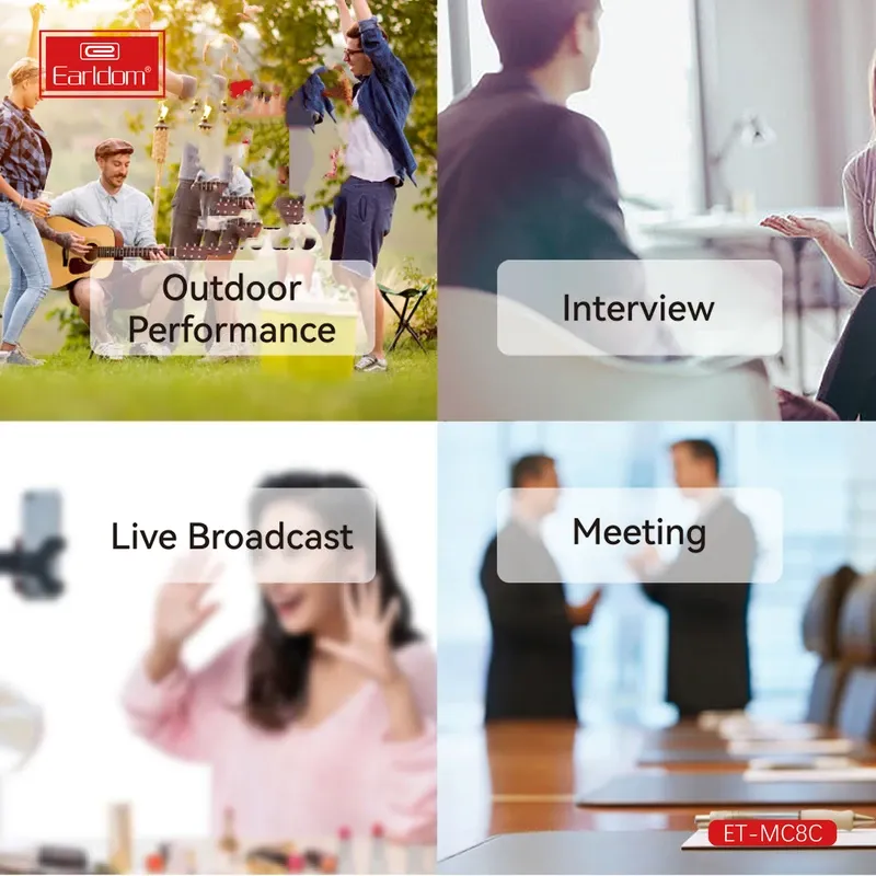- حذف نویز هوشمند (Smart Noise Reduction): به لطف چیپ هوشمند داخلی، میکروفون ET-MC8C به طور فعال نویزهای مزاحم محیطی مانند صدای باد، همهمه جمعیت یا صدای کولر را فیلتر میکند تا صدای شما با وضوح و شفافیت کامل ضبط شود.