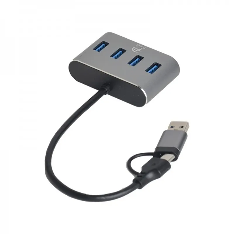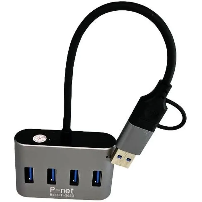 - سازگاری بینظیر با رابط دوگانه: این هاب با یک کانکتور هوشمند دوگانه عرضه شده است که شامل یک پورت USB-A استاندارد و یک پورت Type-C است. این یعنی فرقی نمیکند دستگاه شما یک PC قدیمی باشد یا یک مکبوک مدرن؛ P-3623 با هر دو سازگار است.