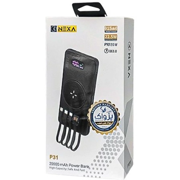 پاوربانک فست شارژ وایرلس 20000mAh نکسا مدل Nexa P31 (کابل متصل)