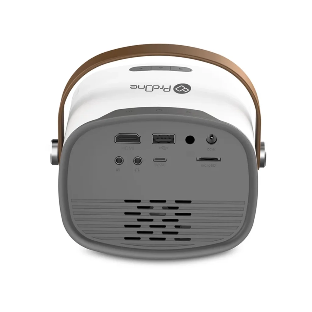 - درگاههای ارتباطی کامل: این پروژکتور مجهز به درگاههای HDMI، USB، کارت حافظه MicroSD و خروجی صدا است. به راحتی میتوانید لپتاپ، کنسول بازی، فلش مموری و اسپیکر خارجی را به آن متصل کنید.