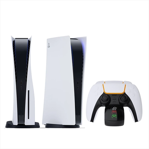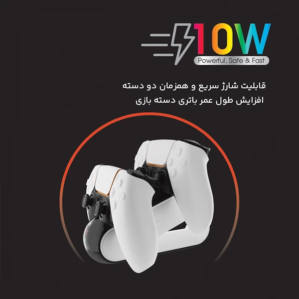 - ✔️ شارژ همزمان دو کنترلر: این پایه به شما اجازه میدهد تا دو دسته DualSense را به صورت همزمان شارژ کنید. بدین ترتیب همیشه یک دسته شارژ شده و آماده برای جایگزینی خواهید داشت.