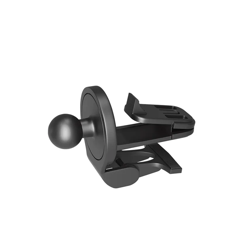 طراحی نیمهشفاف این هولدر که سیمپیچ شارژ را به نمایش میگذارد، ظاهری منحصربهفرد و فناورانه به فضای داخلی خودرو شما میبخشد. گیرهی اتصال به دریچه کولر بسیار مستحکم بوده و به لطف مفصل توپی، امکان چرخش ۳۶۰ درجه را فراهم میکند. به این ترتیب میتوانید به راحتی زاویه دید گوشی را در حالت عمودی یا افقی تنظیم کنید.