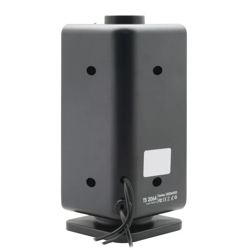 راهاندازی TS 2064 به سادگی آب خوردن است! تنها کافیست کابل USB را برای تأمین برق به پورت USB کامپیوتر یا لپتاپ و کابل صدای 3.5 میلیمتری (AUX) را به خروجی صدای دستگاه خود متصل کنید. یک ولوم چرخشی بزرگ روی یکی از اسپیکرها تعبیه شده که هم برای روشن/خاموش کردن و هم برای تنظیم دقیق بلندی صدا کاربرد دارد. علاوه بر این، یک خروجی هدفون نیز روی بدنه قرار گرفته تا در مواقع نیاز، بدون مزاحمت برای دیگران به کار خود ادامه دهید.