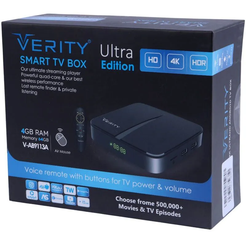 از تماشای محتوای مورد علاقه خود با بالاترین کیفیت لذت ببرید. اندروید باکس وریتی V-AB9113A از وضوح تصویر 4K Ultra HD و تکنولوژی HDR پشتیبانی میکند تا رنگها را زندهتر و جزئیات تصویر را دقیقتر از همیشه ببینید.