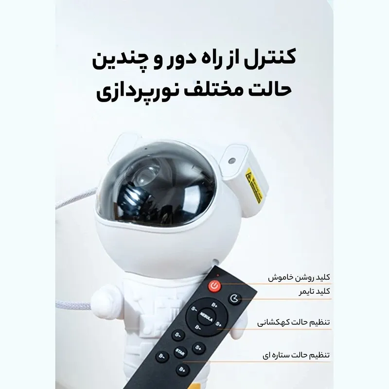 - کنترل کامل در دستان شما: با استفاده از ریموت کنترل همراه دستگاه، میتوانید همه چیز را مدیریت کنید: رنگ و روشنایی سحابیها را تغییر دهید، سرعت چرخش آنها را تنظیم کنید، ستارهها را روشن یا خاموش کرده و حتی حالت "تنفس ستاره" (کم و زیاد شدن نور) را فعال کنید.