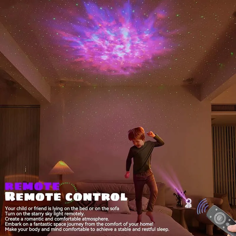 - نمایش خیرهکننده کهکشان: این پروژکتور با ترکیب نورپردازی LED و لیزر، قادر به نمایش 8 حالت مختلف سحابی رنگارنگ و حالت ستارههای چشمکزن (breathing mode) است که میتوانید آنها را به صورت جداگانه یا ترکیبی فعال کنید.