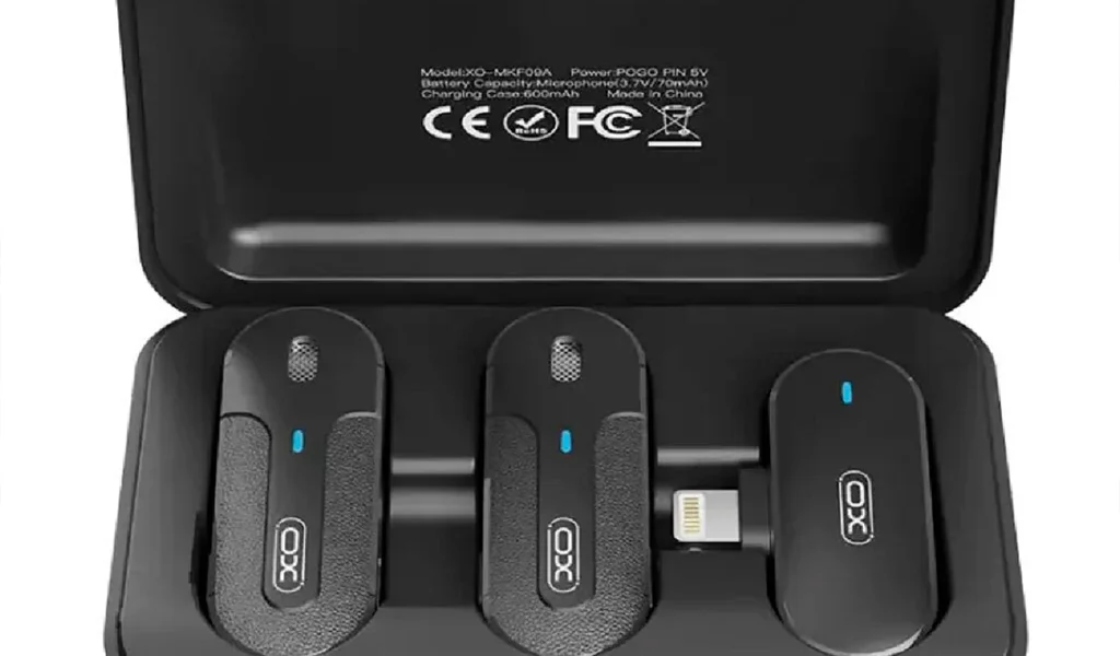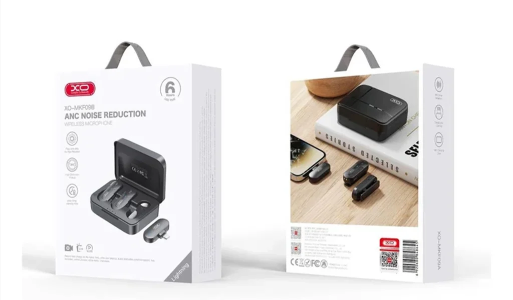 صدای استودیویی برای مصاحبه و تولید محتوا با میکروفون بیسیم XO MKF09B. دارای دو فرستنده، گیرنده لایتنینگ، حذف نویز ANC و کیس شارژ قدرتمند. بهترین گزینه برای آیفون. خرید اقساطی از ویمارکت.