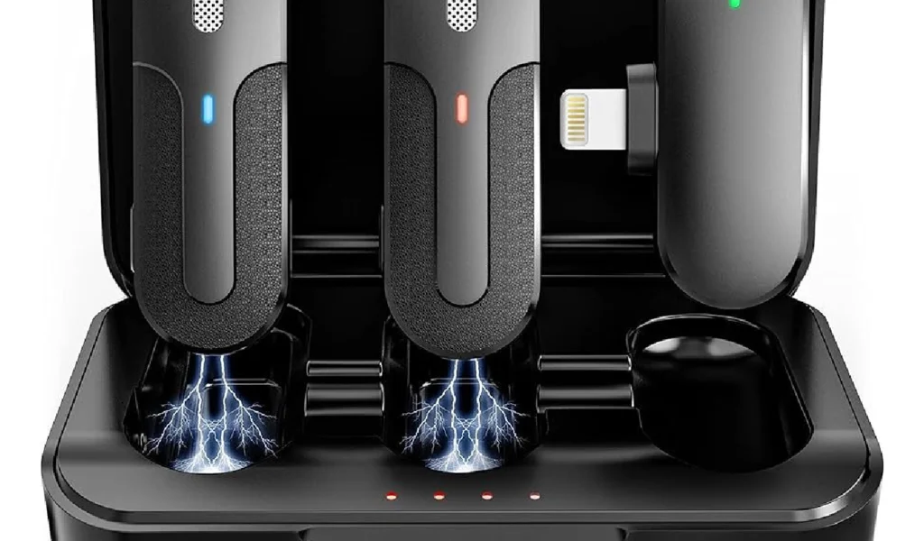 - اتصال مستقیم و فوری به آیفون (Plug & Play): بدون نیاز به هیچ اپلیکیشن یا تنظیمات پیچیده. تنها کافیست گیرنده را به پورت لایتنینگ دستگاه اپل خود متصل کنید و میکروفونها را روشن کنید. اتصال به صورت خودکار و در چند ثانیه برقرار میشود.