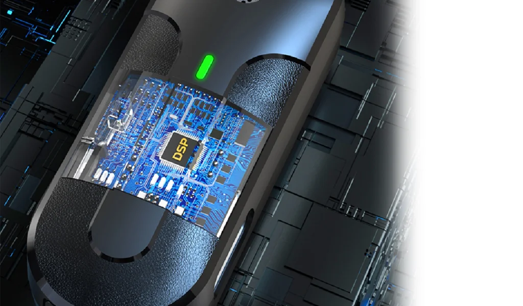 - کیفیت صدای شفاف با تأخیر ناچیز: با بهرهگیری از چیپ پردازش سیگنال دیجیتال (DSP) و ارتباط بیسیم 2.4GHz، این میکروفون صدایی با کیفیت بالا و تأخیر بسیار کم (حدود 20 میلیثانیه) ارائه میدهد که برای هماهنگی کامل صدا و تصویر ضروری است.