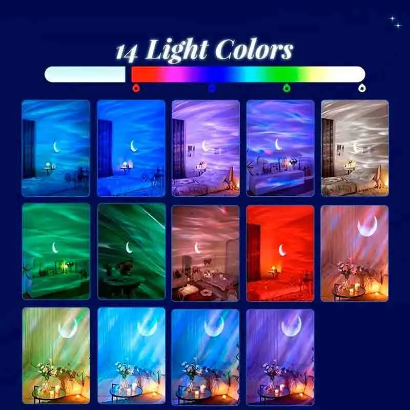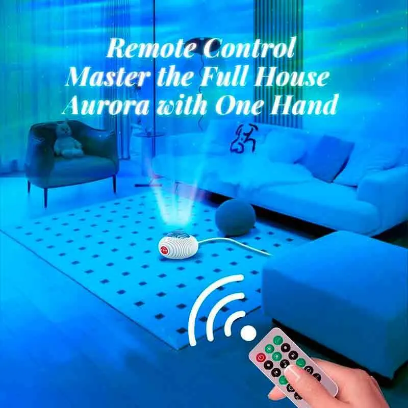 - کنترل کامل با ریموت: با استفاده از ریموت کنترل همراه، میتوانید رنگها، سرعت حرکت نور، حالتهای نمایش، میزان صدا و تایمر دستگاه را از راه دور و بدون بلند شدن از جای خود مدیریت کنید.